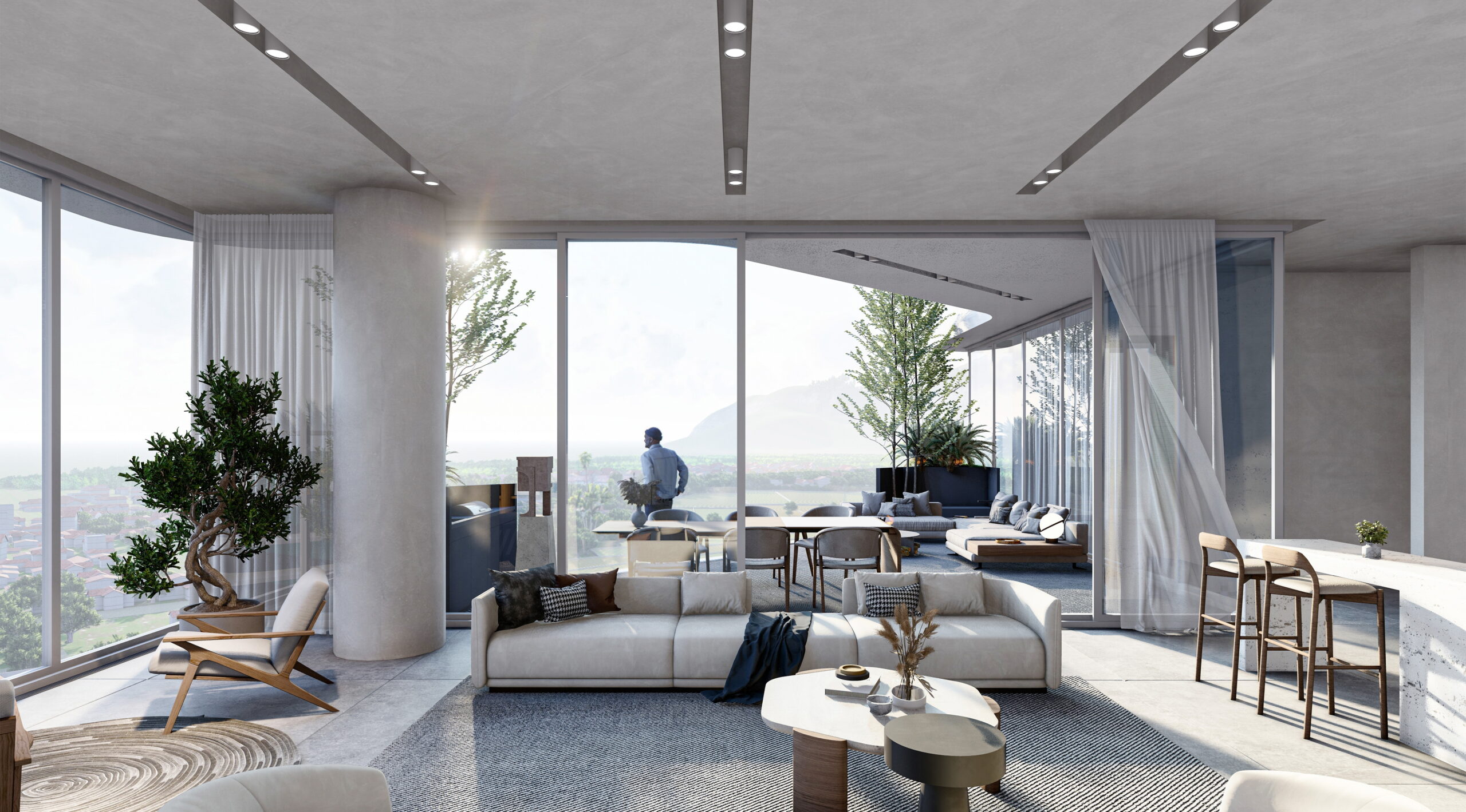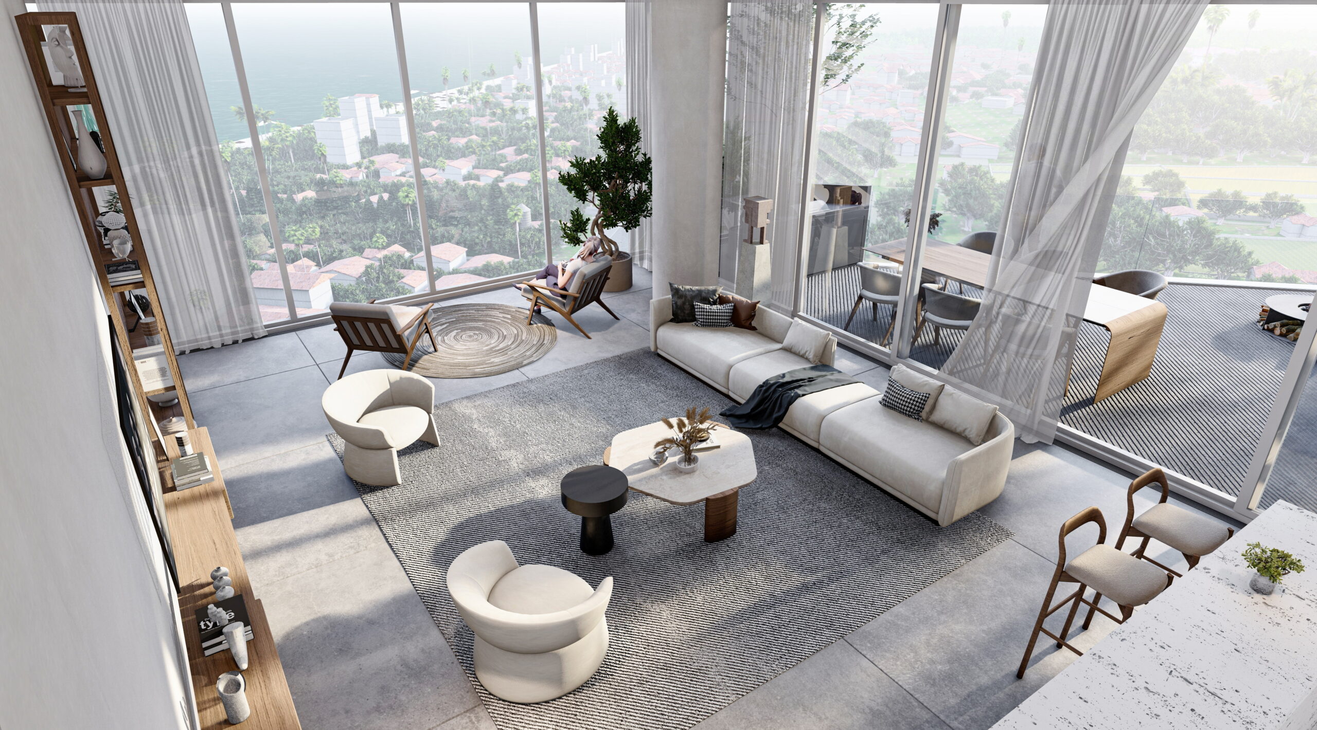 • نشیمن‌های بزرگ با دسترسی و دید مستقیم به تراس